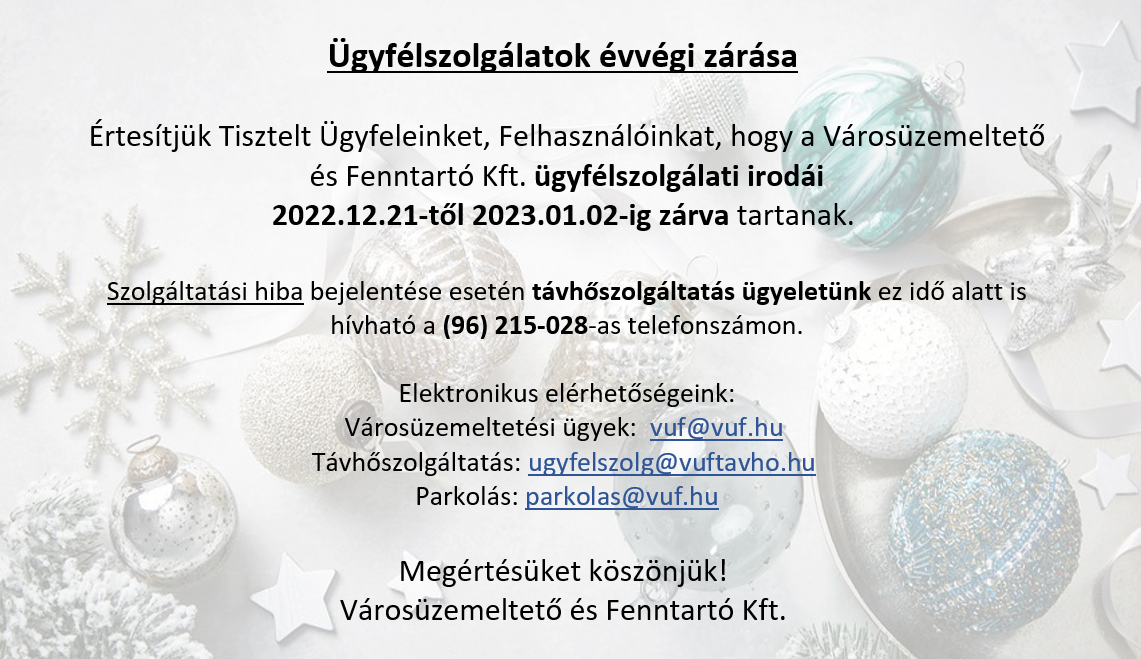 Ügyfélszolgálatok évvégi zárása