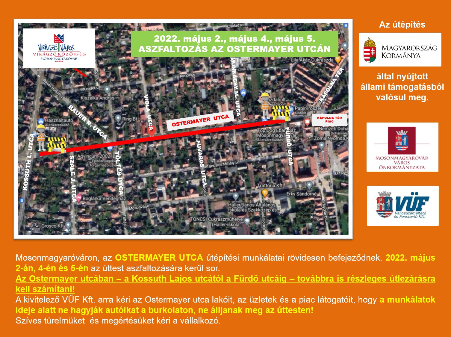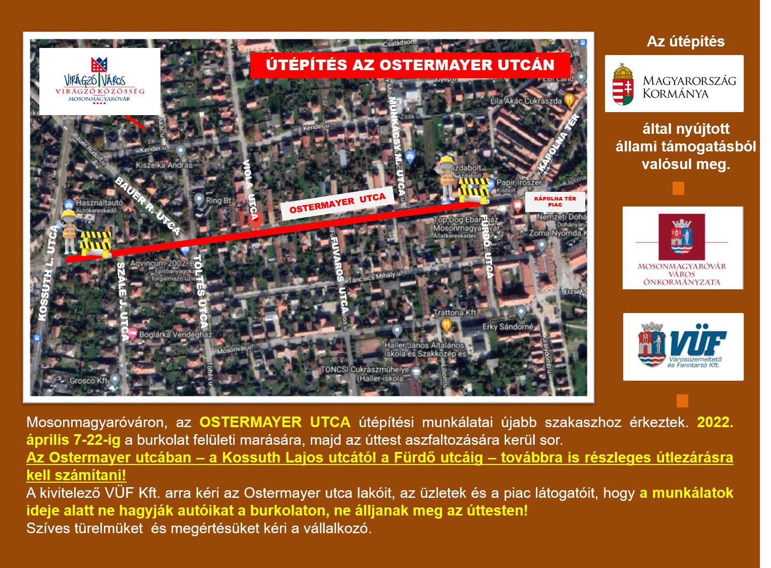 Ostermayer utcai útépítés miatt forgalomkorlátozás várható