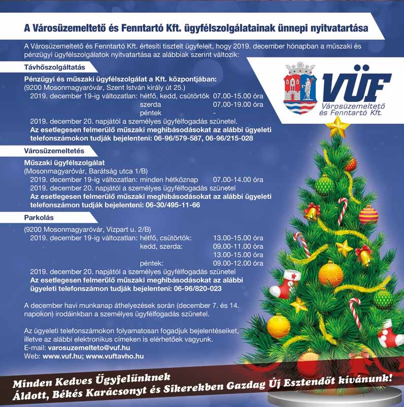 Felhívjuk mindenki figyelmét, hogy a Városüzemeltető Kft