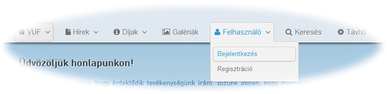 A Bejelentkezés a régi modul-elrendezés helyett a felső menüben a Felhasználó menüpontból érhető el.